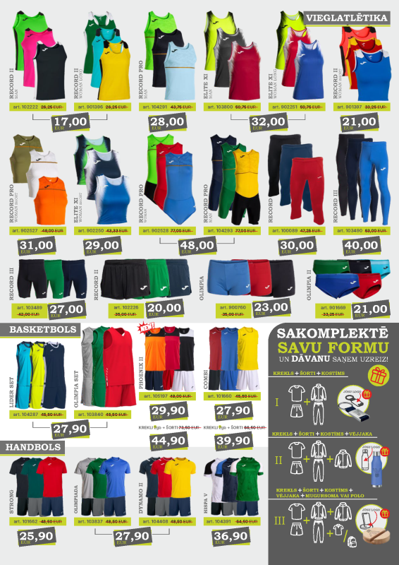 Vai meklējat profesionālu un stilīgu sporta formu savai komandai? Mēs piedāvājam basketbola, futbola, volejbola, florbola, handbola un citu sporta veidu spēļu un treniņu formas par īpaši izdevīgām cenām!